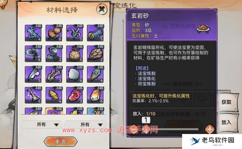 3、还可以在炼制的过程中获取优秀法宝的概率,根据不同的材料可以附加不同的五星属性或者特殊加成。