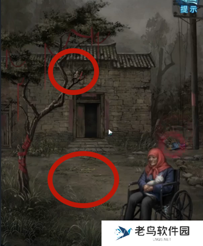 8、面对镜子触发剧情,剧情结束后点击门外的树获得铜人,在院子右侧获得铁锹。
