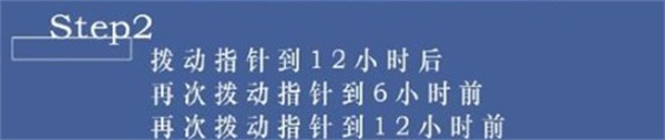 2、先将指针拨动到12小时后,再拨动到6小时前,最后拨动到12小时前。