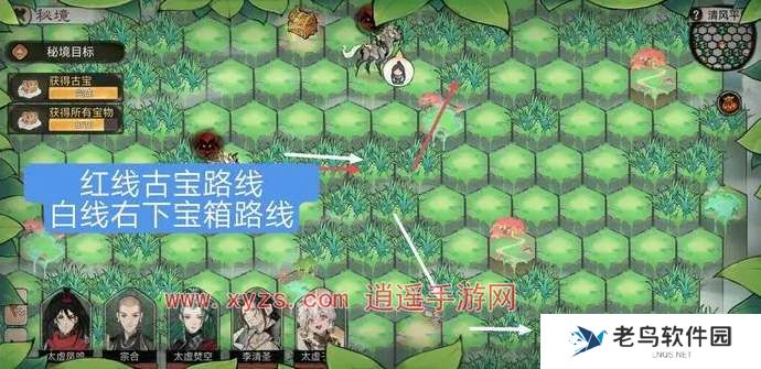 2、红线古宝路线,白线是右下角宝箱的路线: