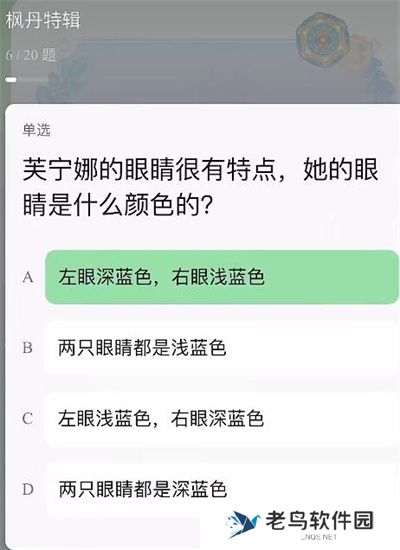 6、芙宁娜的眼球颜色为何?答案:A、左蓝右浅蓝。