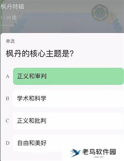1、枫丹的核心主题为?答案:A、正义与审判。