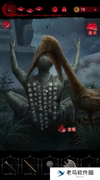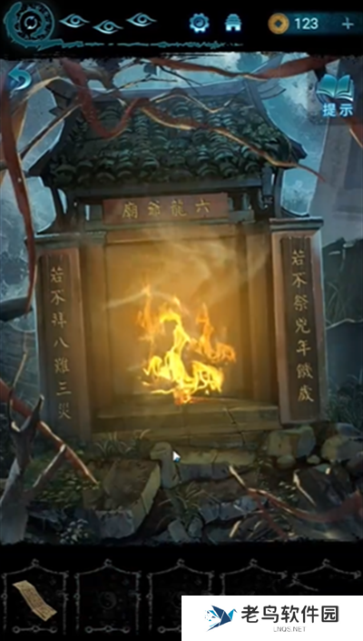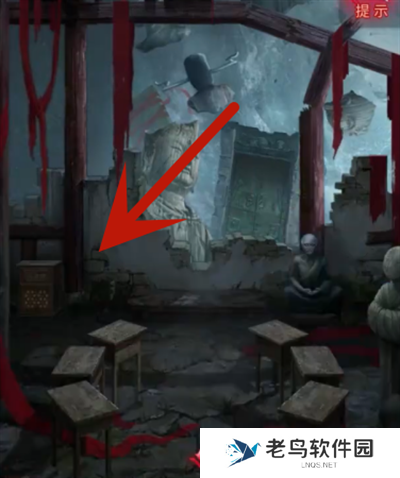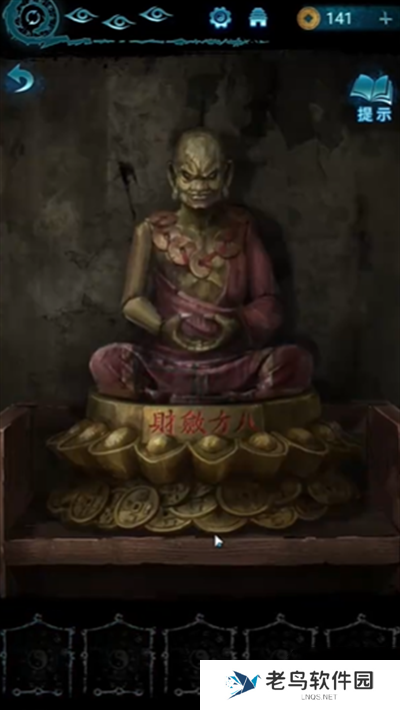 1、触发剧情后,点击佛像顶端物品,获取灵牌;石像后方获得线索。