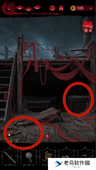 8、将布娃娃传至小奚处,埋于断桥左侧坑内。按老肖视角的迷宫提示完成前方迷宫任务,物品处皆需探查一番。