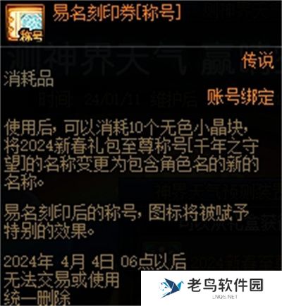 4、真·至尊称号需要购置20套新春礼包,参与第二轮"多买多抽"可得[易名刻印券]