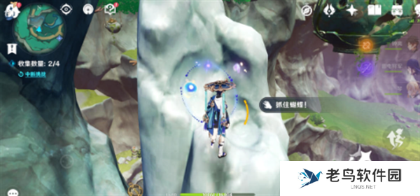 5、第五只:对话神像获得线索,按照提示前往对应的地点。在山崖下利用风系元素激活风场,在前方岩石上找到终级蝶。