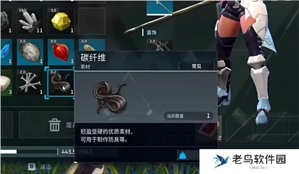 4、碳纤维是游戏中后期制作建筑、防具需要用到的材料,大家可以提前加工一些备用。