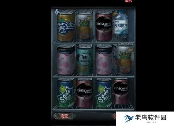 4、在财神的手里找到冰柜的钥匙。移动右上角的饮料至右下角购买矿泉水,然后将右下角的饮料移动至右上角,购买一瓶西莲啤酒。