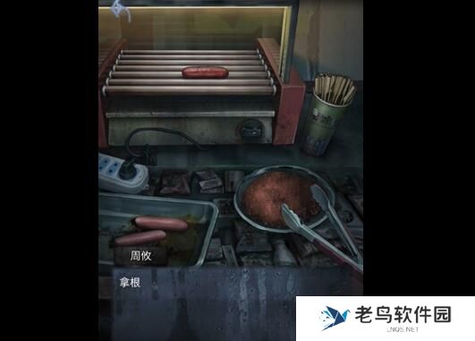 7、用集装箱刀来打开黏住的纸盒获得一炷香。然后再回到一开始的地方拿烤肠会被竹签扎破手。