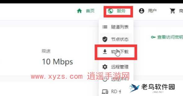 4、选择右上角的【服务-软件下载】,然后下载并安装服务器软件。