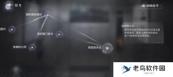 4、收集第二个房间的所有线索,然后进入第三个房间。点击左下角思考,按照下图进行联想。