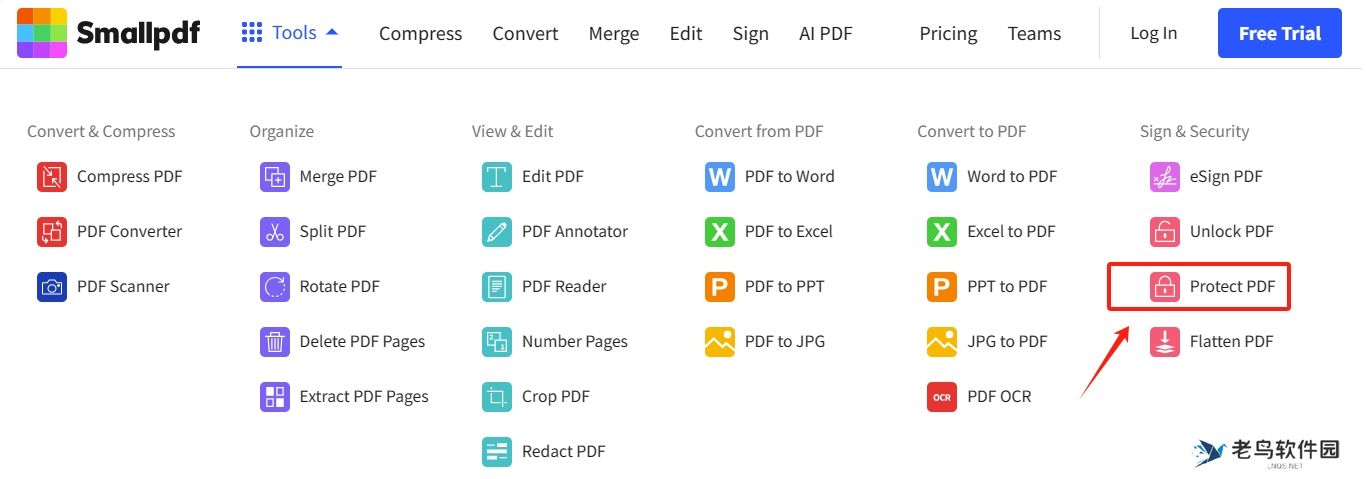 1、打开Smallpdf网站,找到“PDF加密”功能。